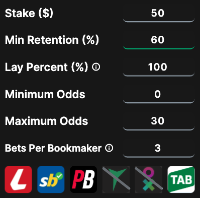 - Min Retention: This is the minimum retention required for a bet to be displayed. We recommend aiming for at least 70%, as maximizing value from promotions depends on consistently converting your bonuses at high retention