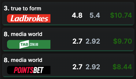 We recommend only placing bets when there’s a clear, quantifiable edge over the bookmaker. That said, if you choose to place a bet based on other reasoning or personal methods, it’s still smart to get the best possible odds. This is where the EV system in RaceWise becomes useful - allowing you to compare odds across bookmakers and ensure you're placing your bet with the highest-paying option.