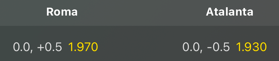 | Outcome | Roma 0.0 | Roma +0.5 |