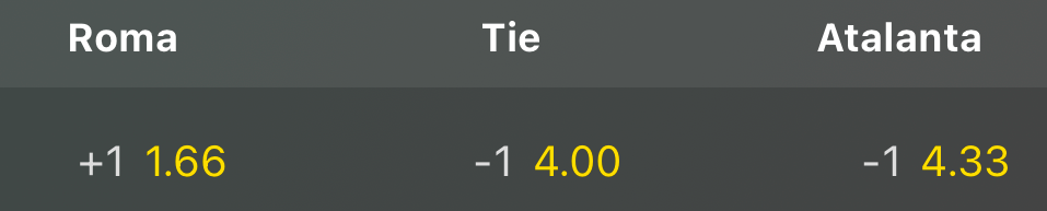 | Three-Way Handicap — Roma +1 / Atalanta −1 / “−1 Tie” | |||