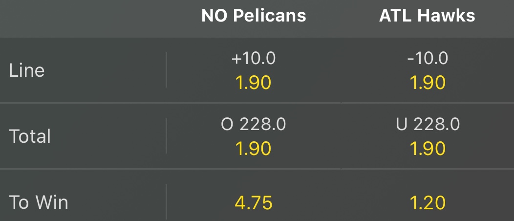 When you think of placing a bet on a game, you likely think of a bet on one team to win. For example the New Orleans Pelicans to win against the Atlanta Hawks. This is one type of betting called moneyline betting , however, many more types of bets exist. We will cover the 6 main types of bets you will run into, along with 3 more complex types.