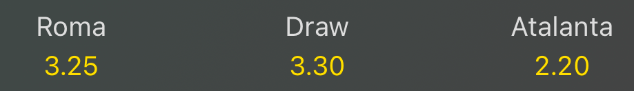 | Match Result | Roma +1 | −1 Tie | Atalanta −1 |
