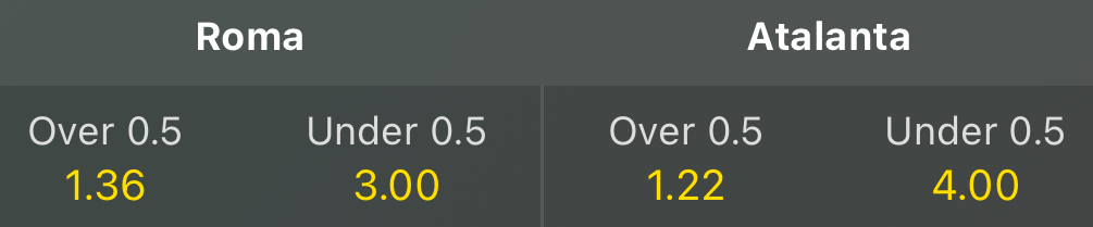 In this case we can bet on the total goals for either Roma or Atalanta.