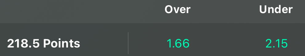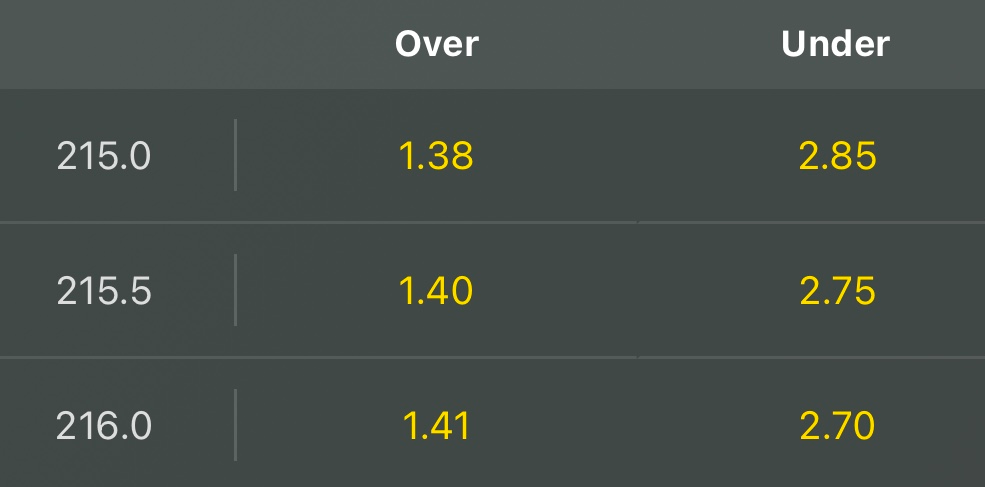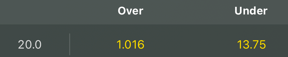 Not all total markets will have a '.5' in the line - some will be whole numbers as shown below. These can be referred to as 'Flat Lines' as the line is a flat or whole number.