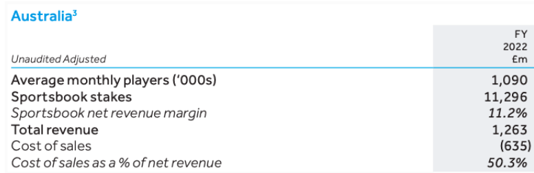 In the Sportsbet financial report we can see a 11.2% net revenue margin which we can approximately translate into the average margin present in Sportsbet's odds.