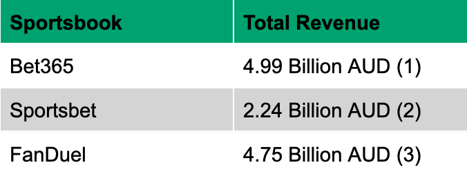 Looking at the largest sportsbooks in the UK, Australia and the USA, it can be seen that sportsbooks generate massive amounts of revenue. These numbers are achieved through the addition of a margin into the odds.