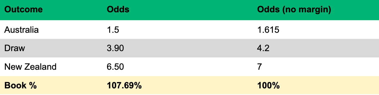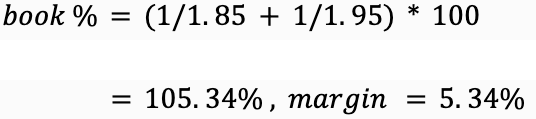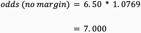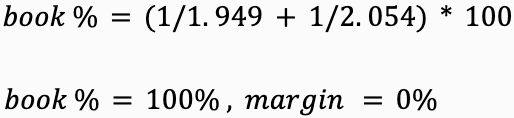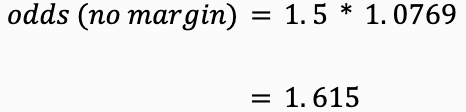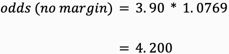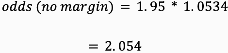 In the above example we assumed the sportsbook margin to be 5%. How do we calculate the margin with real odds and find what the odds would be with no margin?