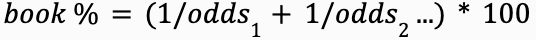 To confirm we have successfully removed the margin from the odds, let's calculate the book percentage once again with our new odds.